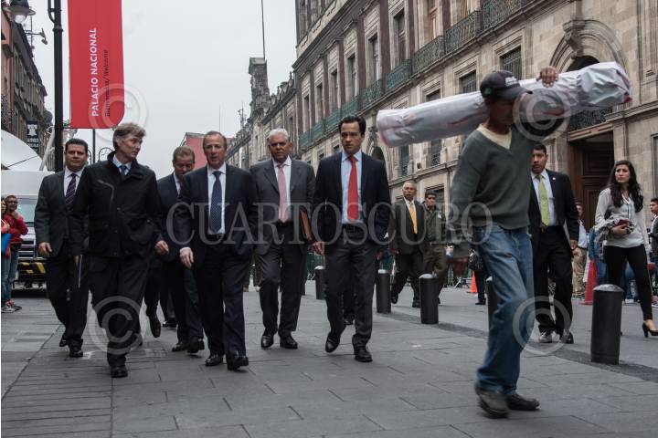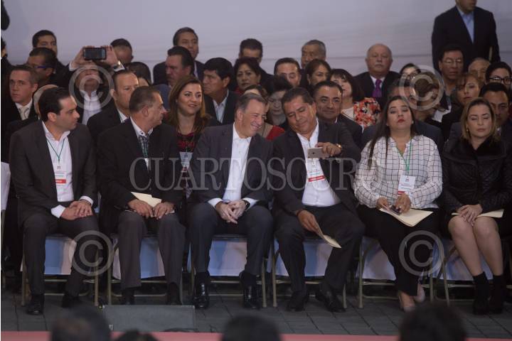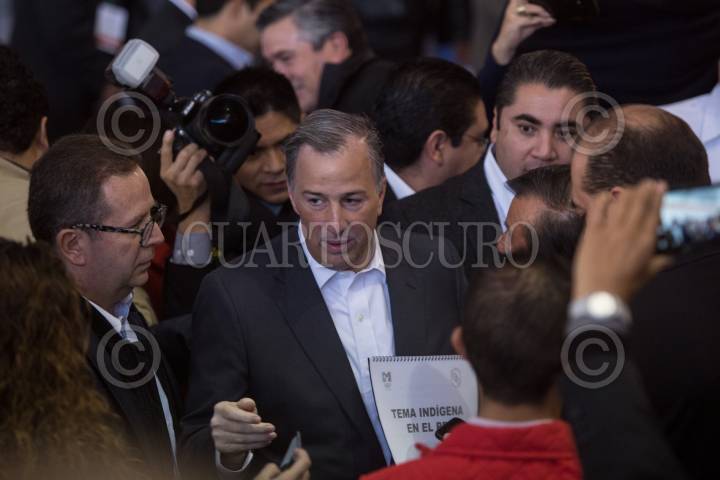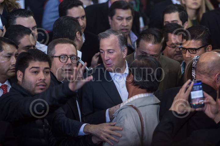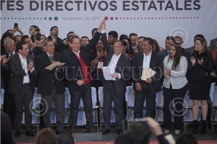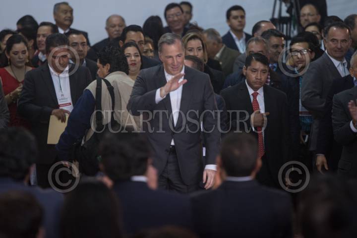 CIUDAD DE MÉXICO, 30NOVIEMBRE2017.- José Antonio Meade Kuribreña durante su encuentro con directivos estatales del Partido Revolucionario Institucional, donde recibió por parte de todos los líderes cartas de aprobación para su postulación como candidato presidencial del Partido. Asimismo, Eruviel Ávila, presidente del PRI en la Ciudad de México, le entregó su documento de aprobación y apoyo al pre candidato. FOTO: TERCERO DÍAZ /CUARTOSCURO.COM