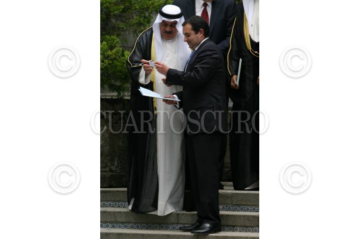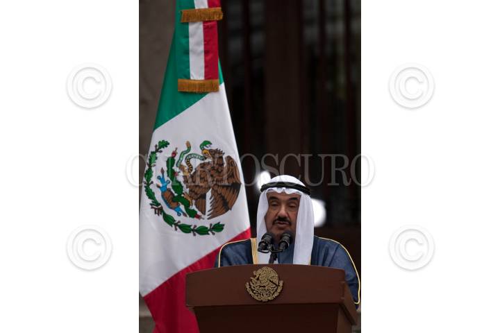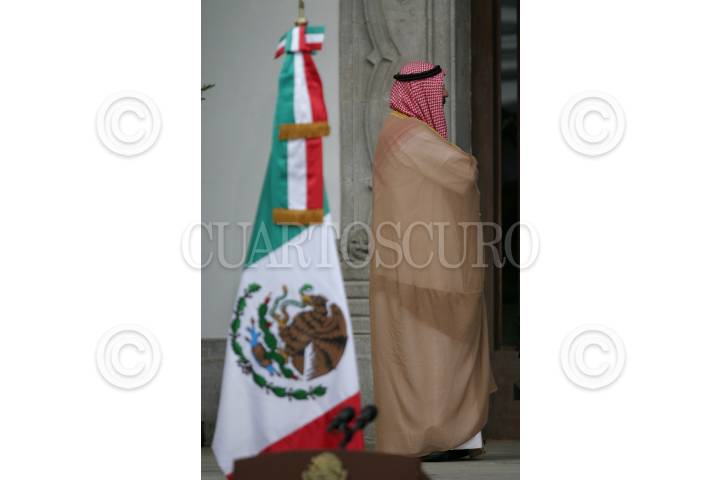 MÉXICO, D.F., 15JULIO2010.- Jeque Nasser Al-Sabah, primer ministro de Kuwait, acompañó a Felipe Calderón Hinojosa, presidente de México, a un mensaje que dieron a los medios de comunicación donde también se firmó un acuerdo de cooperación entre ambos países. Esto, se realizó en la escalinata de la Casa Miguel Alemán de la Residencia Oficial de Los Pinos. FOTO: MISAEL VALTIERRA/CUARTOSCURO.COM