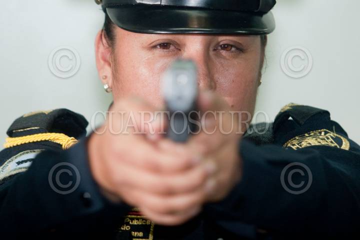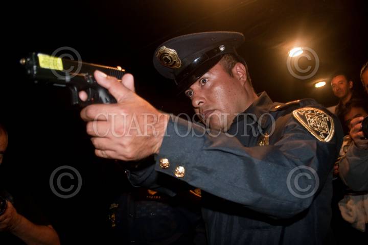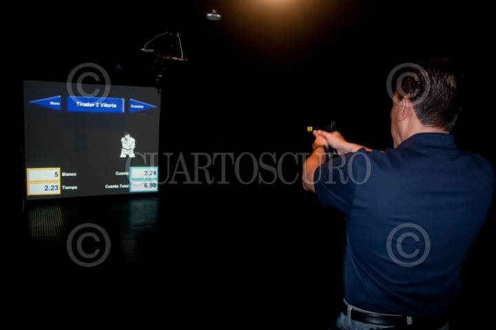 MÉXICO, D.F., 28JULIO2009.- La Secretaria de Seguridad Publica del Distrito Federal, comenzó la capacitación de tiro con tecnología láser, esta nueva tecnología lleva como nombre, "Unidad de capacitación con simulador de tiro láser". FOTO: RICARDO CASTELAN/CUARTOSCURO.COM