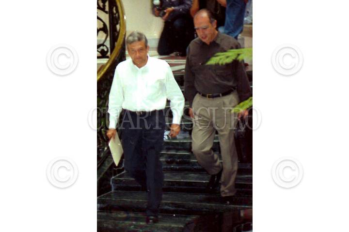 Andres Manuel Lopez Obrador, jefe del gobierno del D.F., acompañado de Fernando Canales Clariond, salen de la reunion con el presidente Vicente Fox. FOTO: Victoria Valtierra/CUARTOSCURO.COM