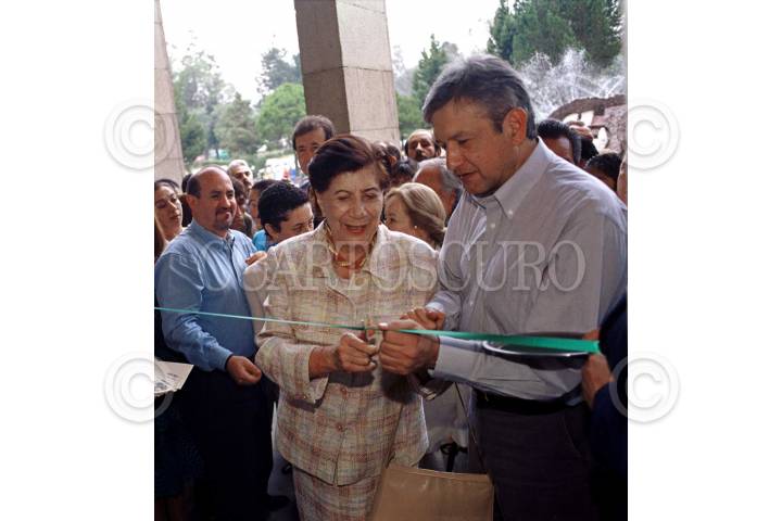 Andrés Manuel Lopéz Obrador acompañado de Guadalupe Rivera, hija del famoso muralista, reinauguró el Mural de Diego Rivera "El agua origen de la vida" en la segunda sección del Bosque de Chapultepec. FOTO:Eunice Adorno/CUARTOSCURO.COM