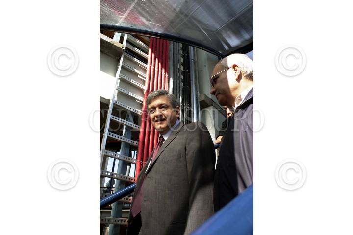 Andrés Manuél López Obrador, jefe de gobierno del Distrito Federal y Cristobal Jaime Jaquez, director de la Comisión Nacional del Agua, al termino de la inauguración de la Planta de Bombeo "Río Hondo" en Naucalpan , Estado de México. FOTO: Oswaldo Ramírez/CUARTOSCURO.COM