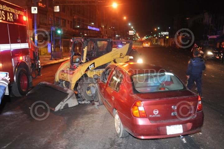 MÉXICO D.F; 30DICIEMBRE2013.- Un hombre de aproximadamente 30 años, pierde la vida al impactar el auto Platina en que viajaba como pasajero contra un trascabo que realizaba maniobras de repavimentación en Av. Circunvalación a la altura de la calle Penitenciaria de la colonia Merced. FOTO: LUIS CARBAYO /CUARTOSCURO.COM