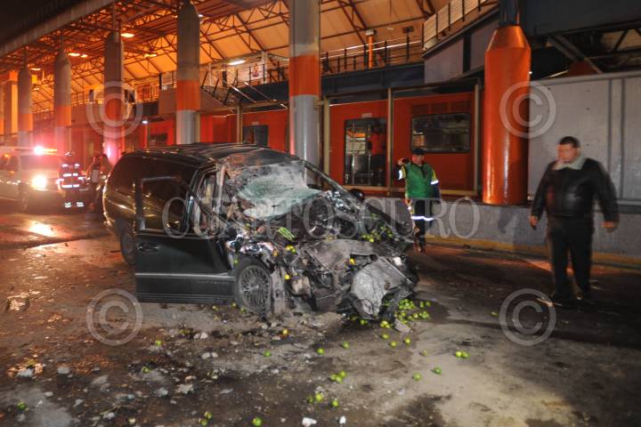 ECATEPEC, ESTADO DE MÉXICO; 04ENERO2014.- Un hombre de aproximadamente 25 años, pierde la vida al impactar con la camioneta Windstar que conducía, contra una camioneta de 31/2 Tns. que transportaba limón y se encontraba estacionada en carriles centrales de Av. Central, junto a la estación del metro Ciudad Azteca en Ecatepec. FOTO: LUIS CARBAYO /CUARTOSCURO.COM