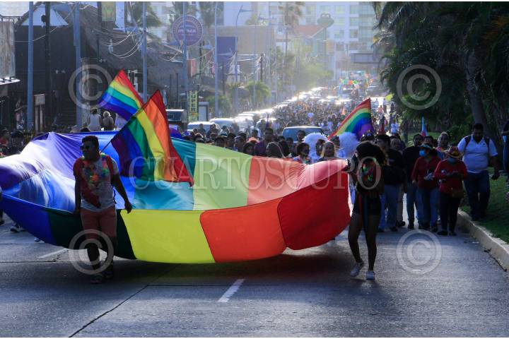 Aspectos de la XIII Marcha Histórica LGBTTTIQPA+ Acapulco 2022 con motivo del mes del orgullo por la diversidad sexual.