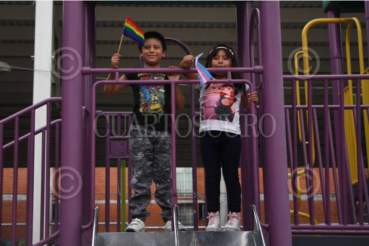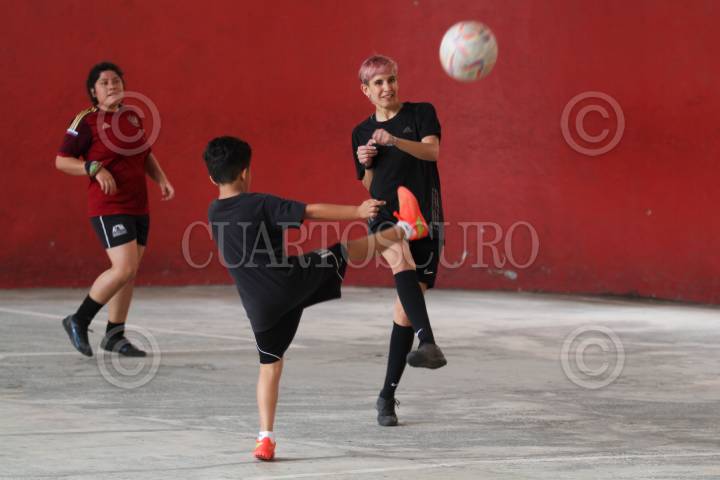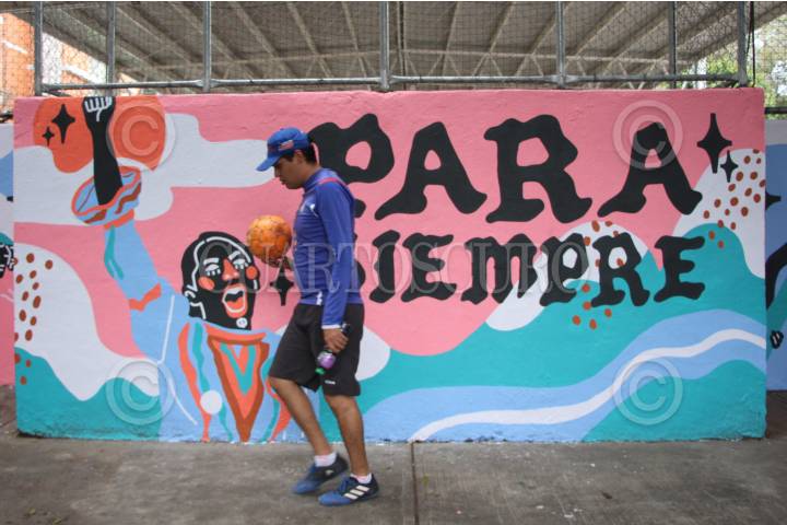 Integrantes de la comunidad LGBT+ y vecinos y niños de la colonia San Joaquín jugaron un partido de fútbol durante un mini torneo con la finalidad de inaugurar un mural, celebrar la diversidad sexual y conocerse entre sí.