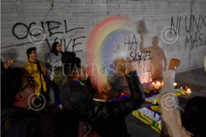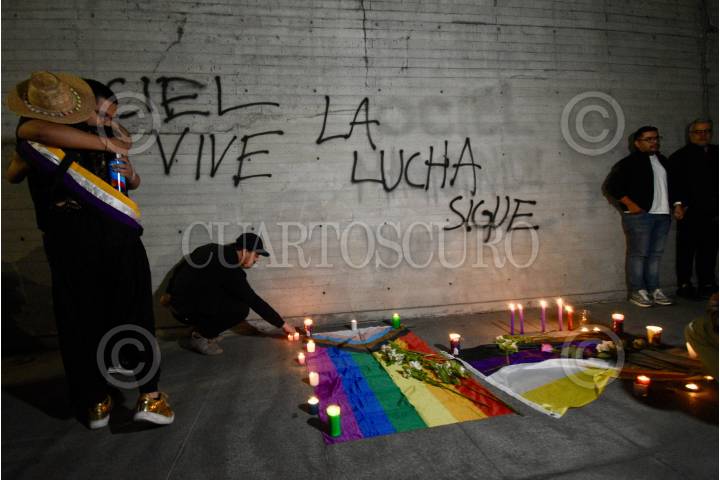 CIUDAD DE MÉXICO, 13NOVIEMBRE2024.- Colectivos de la población LGBTTTIQPA instalaron un memorial en honor a le magistrade Ociel Baena a un año de su muerte, en la Estela de Luz. FOTO: HAARÓN ÁLVAREZ/CUARTOSCURO.COM