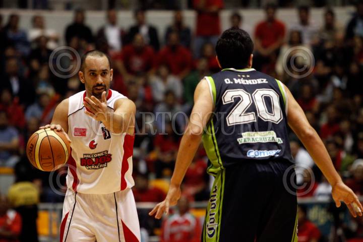 VERACRUZ, VERACRUZ, 05MARZO2010.- Ante un lleno espectacular se presencio el primer duelo en la final de la Liga Nacional de Baloncesto Profesional (LNBP) el cual se disputo en la duela del auditorio Benito Juárez de esta ciudad, Halcones Rojos Veracruz cayó ante su similar Halcones U.V Xalapa, por la mínima diferencia de 1 punto, 79 – 80 la cual le dio la ventaja a los capitalinos en esta primera fase. FOTO: FÉLIX MÁRQUEZ/CUARTOSCURO.COM