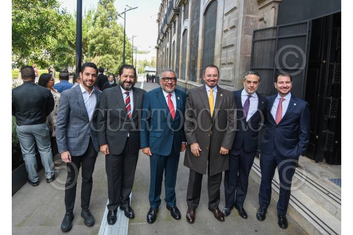 TOLUCA, ESTADO DE MÉXICO, 05SEPTIEMBRE2025.- Toma de protesta d ella integrantes de la JUCOPO de la LXII Legislatura local compuesta por los diputados José Francisco Vázquez como presidente, Alberto Couttolenc, Elías Rescala, Oscar González Yáñez, Pablo Fernández de Ceballos, Juan Manuel Zepeda Hernández y Omar Ortega. FOTO: CRISANTA ESPINOSA AGUILAR/CUARTOSCURO.COM