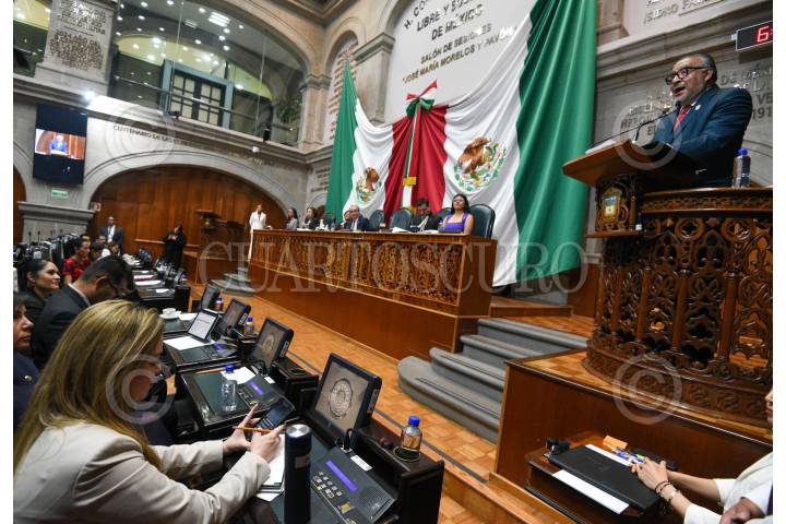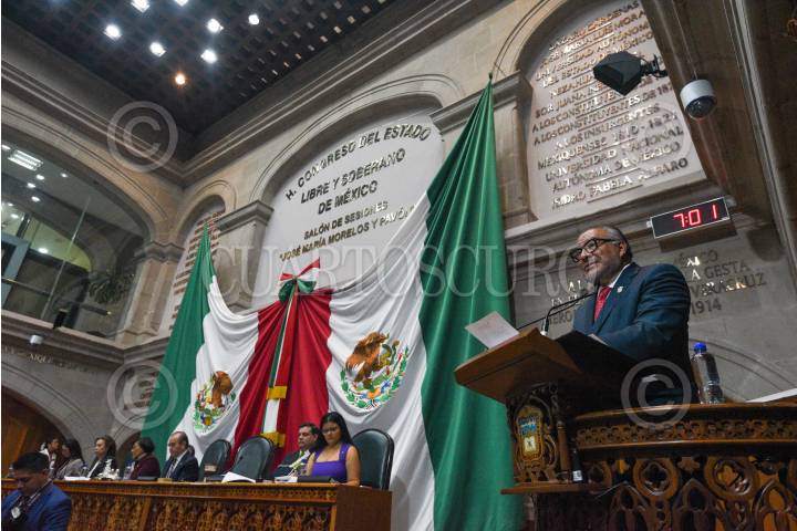 TOLUCA, ESTADO DE MÉXICO, 05SEPTIEMBRE2025.- Francisco Vázquez Rodríguez rindió su informe de resultados del primer año de ejercicio constitucional al frente de la Junta de Coordinación Política (JUCOPO) durante la Sesión del Primer Periodo Ordinario de Sesiones del Segundo Año de la LXII Legislatura del Estado de México. FOTO: CRISANTA ESPINOSA AGUILAR/CUARTOSCURO.COM