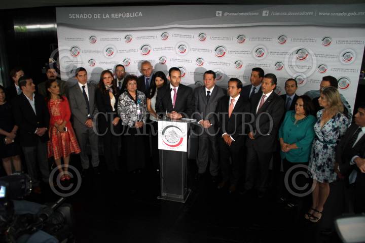 MÉXICO, D.F., 30ABRIL2015.- Conferencia del grupo parlamentario del Partido Acción Nacional en la cual informaron que no regresarán a la sesión porque el PRI ha bloqueado la discusión y elección del magistrado del TEPJF. FOTO: ADOLFO VLADIMIR /CUARTOSCURO.COM
