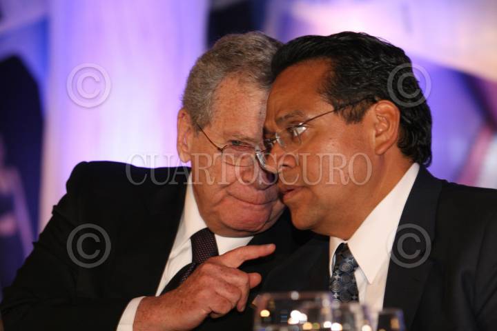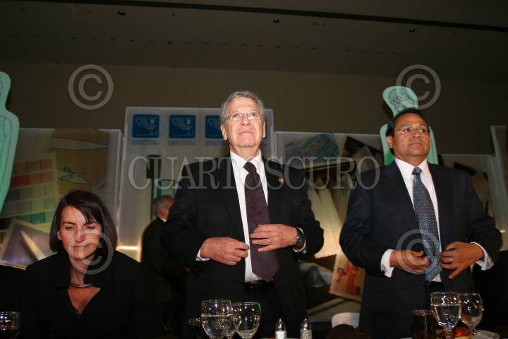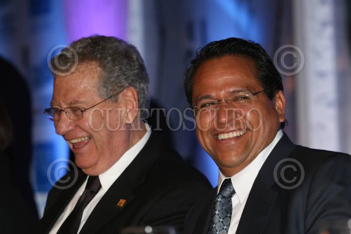 MÉXICO D.F., 04MARZO2009.- Simón Felman Edvabny, presidente de la Cámara Nacional de la Industria del Vestido de Juan Manuel Oliva Ramírez, Gobernador del Estado de Guanajuato, realizó la clausura de los trabajos de la LXIV Asamblea Ordinaria de esta cámara. FOTO: GUILLERMO PEREA/CUARTOSCURO.COM