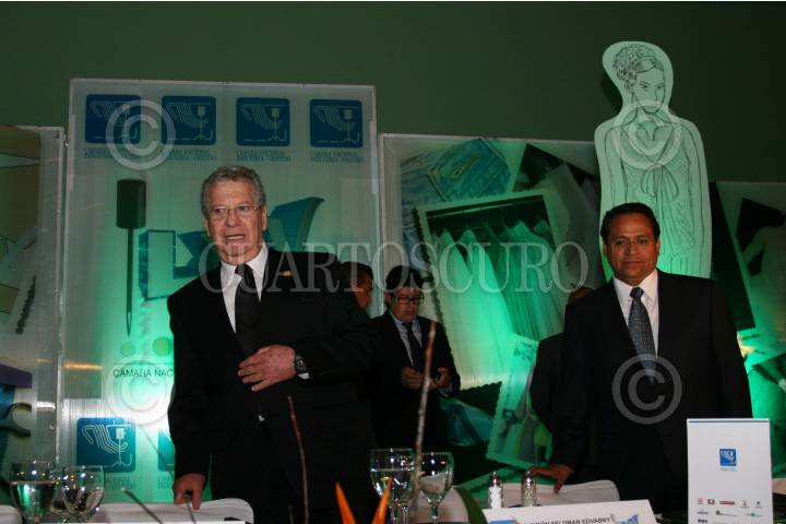 MÉXICO D.F., 04MARZO2009.- Simón Felman Edvabny, presidente de la Cámara Nacional de la Industria del Vestido acompañado durante la clausura de los trabajos de la LXIV Asamblea Ordinaria de esta cámara. FOTO: GUILLERMO PEREA/CUARTOSCURO.COM