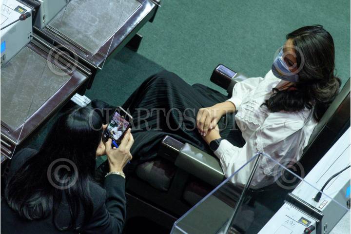 Isabel Margarita Guerra, diputada del PAN toma una fotografía a su compañera de bancada Martha Estela Romo durante la Sesión Ordinaria Semipresencial de la Cámara de Diputados.