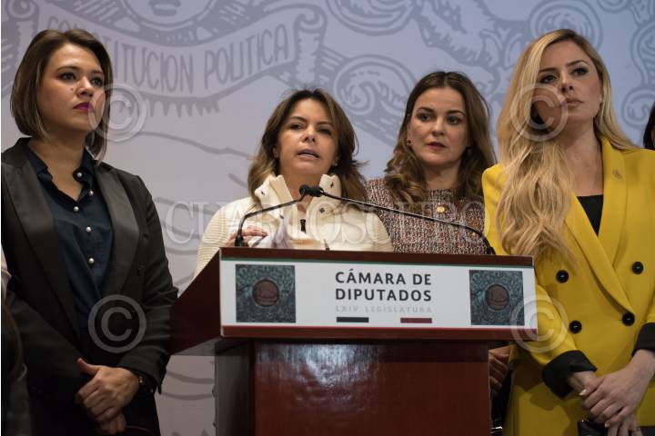 CIUDAD DE MÉXICO, 14FEBRERO2019.- Se llevo a cabo la Sesión Ordinaria de la LXIV Legislatura de la Cámara de Diputados, en la que se trataron temas sobre el principio de no intervención en la política exterior de Venezuela, por parte de México. En la imagen, Laura Barrera Fortoul, diputada por el PRI, encabezó conferencia de prensa, para manifestar su postura en torno al recorte presupuestal hacia las estancias infantiles. FOTO: MARIO JASSO /CUARTOSCURO.COM