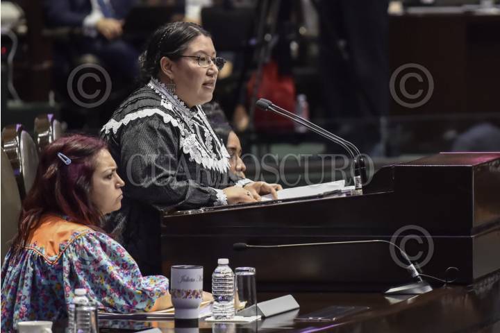 CIUDAD DE MÉXICO, 26FEBRERO2019.- Se llevo a cabo la Sesión Ordinaria de la LXIV Legislatura de la Cámara de Diputados. En la imagen, la ciudadana Yaznaya Aguilar, durante su participación realizada en el marco de la celebración del año internacional de las Lenguas Indígenas. FOTO: MARIO JASSO / CUARTOSCURO.COM