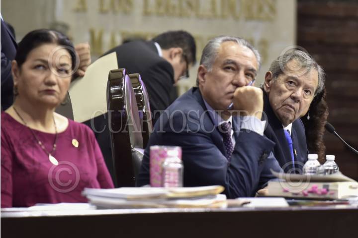 CIUDAD DE MÉXICO, 26FEBRERO2019.- Se llevo a cabo la Sesión Ordinaria de la LXIV Legislatura de la Cámara de Diputados. En la imagen, los vicepresidentes de la mesa directiva: Dulce María Sauri, diputada por el (PRI) y Marco Antonio Adame (PAN), junto a Porfirio Muñoz Ledo, presidente de la mesa directiva de la Cámara de Diputados. FOTO: MARIO JASSO / CUARTOSCURO.COM