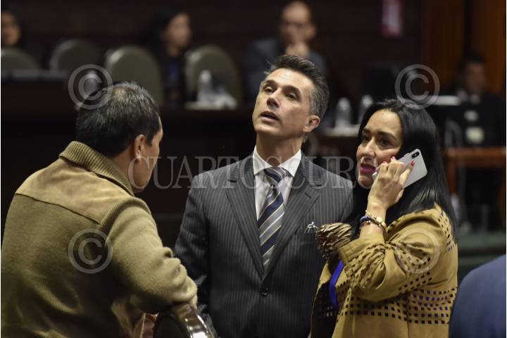 CIUDAD DE MÉXICO, 26FEBRERO2019.- Se llevo a cabo la Sesión Ordinaria de la LXIV Legislatura de la Cámara de Diputados. En la imagen, Sergio Mayer, diputado de Morena junto a Karla Yuritzi Almazán, diputada por Morena y secretaría de la mesa directiva en diputados. FOTO: MARIO JASSO / CUARTOSCURO.COM