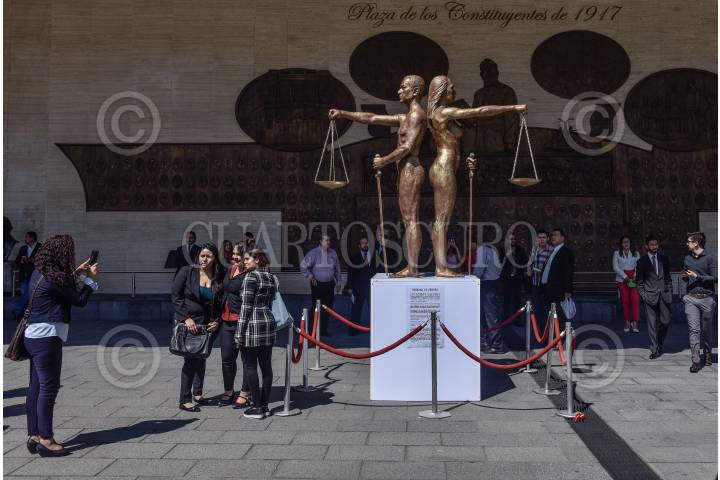 CIUDAD DE MÉXICO, 12MARZO2019.- Fue colocada la escultura “Paridad de Género” del escultor Ponzanelli, en la explanada principal del conjunto de San Lázaro, como parte de las actividades de la LXIV Legislatura que los diputados han denominado de la “paridad de género, justicia e igualdad”. FOTO: MARIO JASSO /CUARTOSCURO.COM
