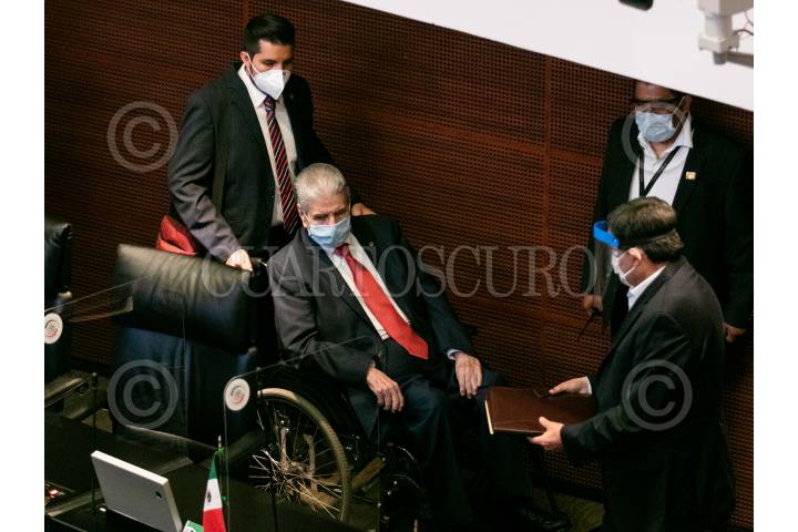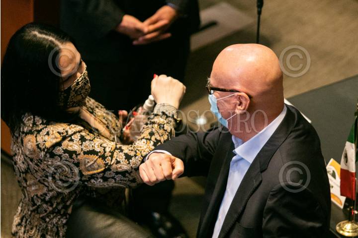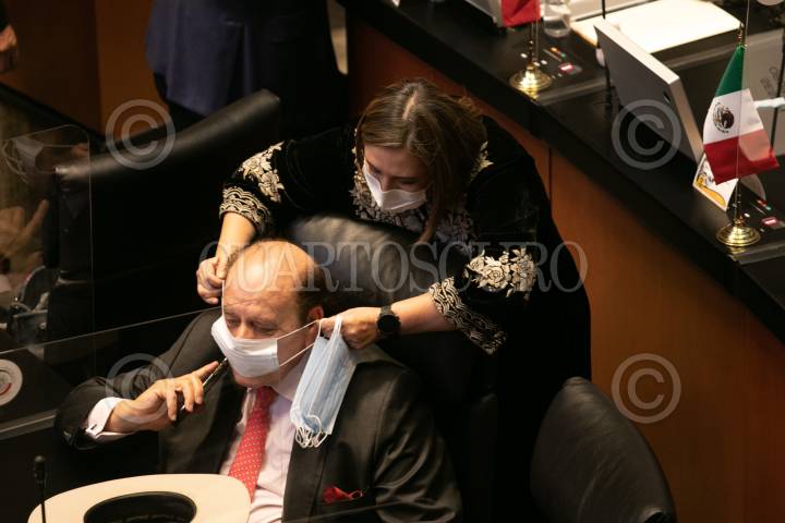 Aspectos del minuto de silencio en honor a las vícitmas de Covid-19 durante la sesión ordinaria del senado.