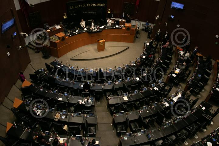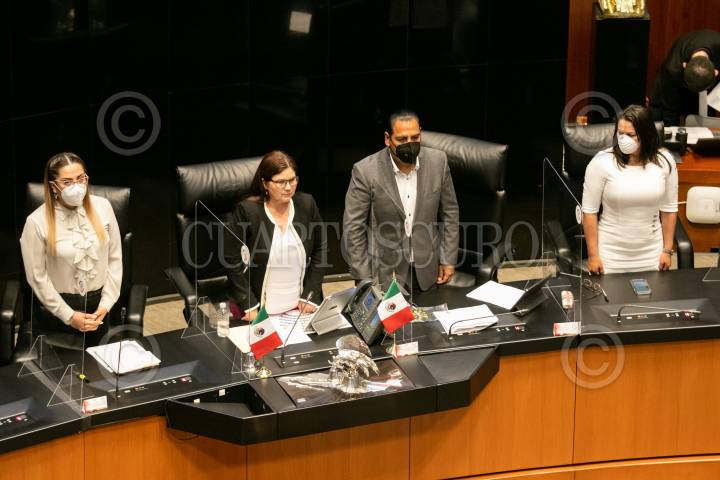 María Guadalupe Cisneros, secretaria de la Mesa Directiva; Imelda Castro, Vicepresidenta de la mesa; Oscar Ramírez, presidente del Senado, y María Merced González, secretaria, durante la sesión ordinaria.