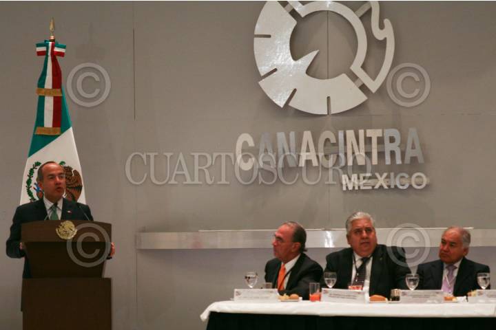 MEXÍCO D.F. 04MARZO2008.-El presidente, Felipe Calderón, acudio a un desayono con integrantes de la CANACINTRA con motivo de la inauguración de la LXVII Asamblea General Ordinaria de esta asociación. FOTO: GUILLERMO PEREA/CUARTOSCURO.COM