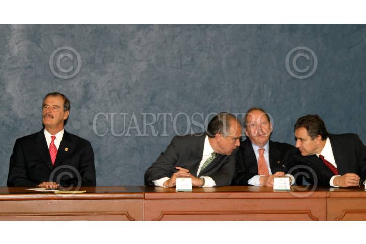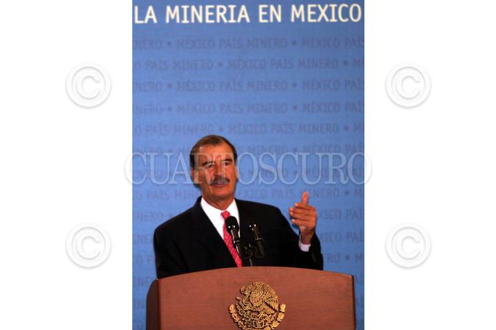 México, D.F. 23 JUNIO 2004.- José Cerrillo Chowell, directivo de la cámara minera de México, y Vicente Fox, primer mandatario de México, durante la ceremonia de clausura de la LXVII Asamblea general anual de la cámara minera de México. FOTO: Sandra Perdomo/CUARTOSCURO.COM