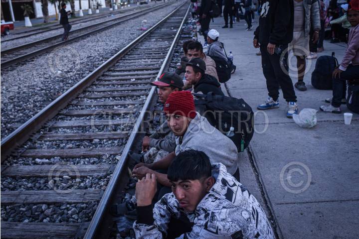 GÓMEZ PALACIOS, DURANGO, 17DICIEMBRE2024.- Después de días esperando el tren, durmiendo a un costado de las vías ferroviarias, un grupo de alrededor de 200 migrantes, provenientes en su mayoría de Venezuela, se montaron en los vagones para continuar su camino al norte del continente. FOTO: PEDRO ANZA /CUARTOSCURO.COM