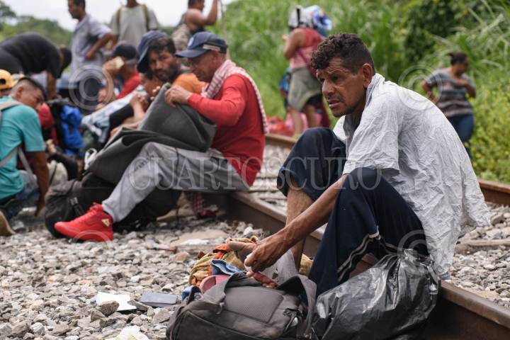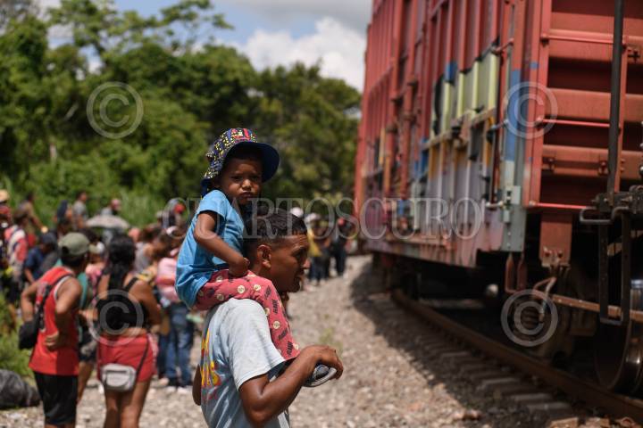 COATZACOALCOS, VERACRUZ, 22AGOSTO2024.- La caravana migrante "Jesucristo" ha arribado al municipio de Sayula de Alemán, en el sur de Veracruz. Este jueves 22 de agosto el grupo decidió ingresar a la comunidad de Medias Aguas, donde se encuentran analizando qué ruta seguir rumbo al norte del país y si es factible el tren. José, el encargado de la caravana, ha expresado la preocupación que impera entre los migrantes debido a la escasez de recursos básicos como agua y comida que ha puesto en riesgo la salud de los integrantes de la caravana sobre todo de los niños. En medio de estas dificultades, la caravana Jesucristo está evaluando la posibilidad de subirse al tren, una opción conocida entre los migrantes como "La Bestia". Aunque esta ruta podría acelerar su avance, todos en la caravana son conscientes de los peligros que implica. FOTO: ÁNGEL HERNÁNDEZ/CUARTOSCURO.COM