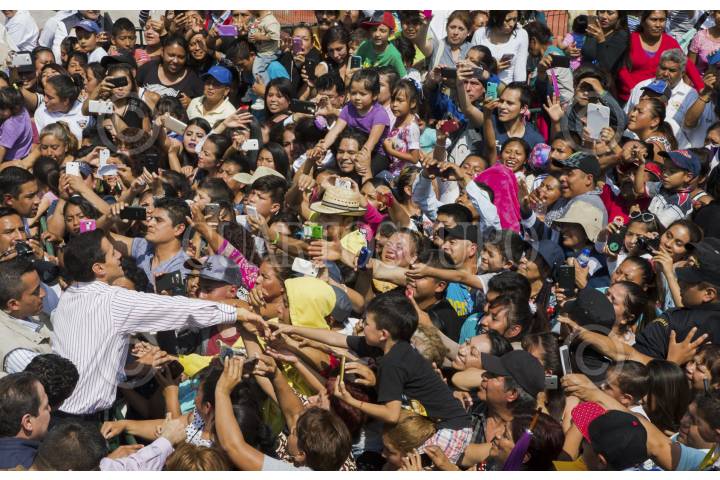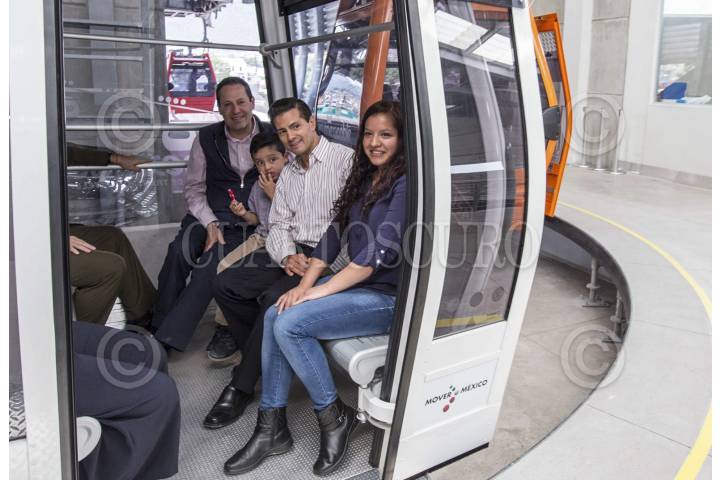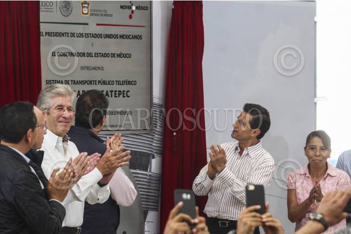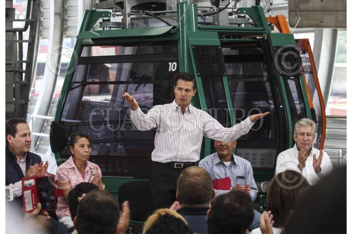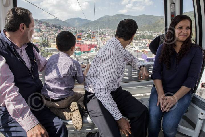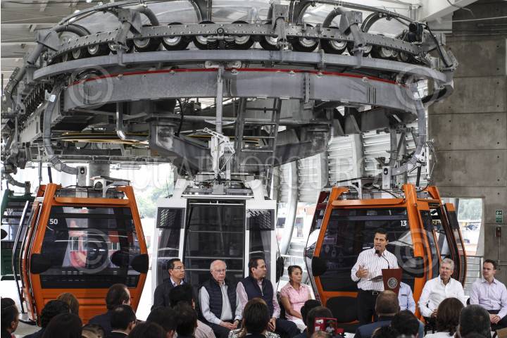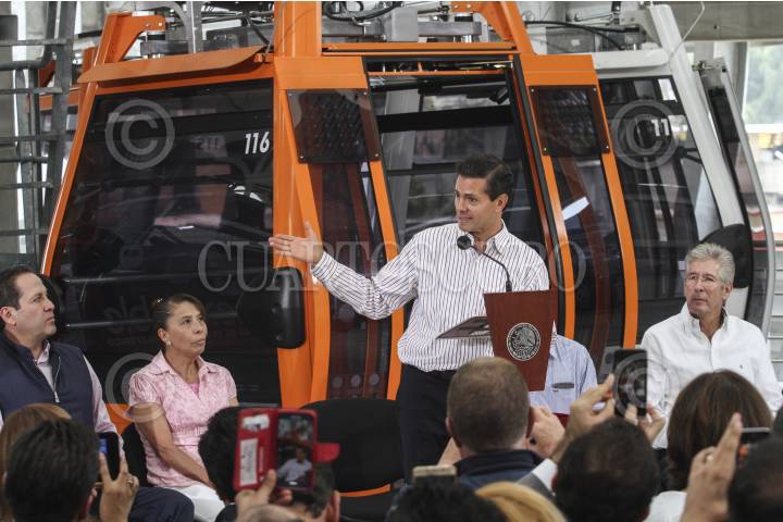 ECATEPEC, ESTADO DE MÉXICO, 04OCTUBRE2016.- El presidente Enrique Peña Nieto, acompañado por el gobernador del estado Eruviél Ávila, inauguró oficialmente las instalaciones del teleférico "Mexicable". La ruta abarca de La Cañada hasta Santa Clara, un tramo de 5 kilómetros que se recorren en 15 minutos, lo que regularmente se recorrería en 45 minutos en horas pico. FOTO: MARÍA JOSÉ MARTÍNEZ /CUARTOSCURO.COM