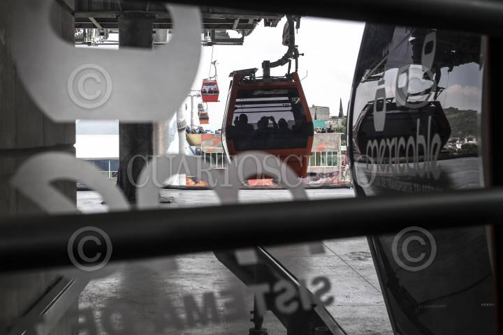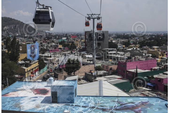 ECATEPEC, ESTADO DE MÉXICO, 04OCTUBRE2016.- El teleférico Mexicable fue inaugurado esta tarde por el presidente Enrique Peña Nieto. La ruta abarca de La Cañada hasta Santa Clara, un tramo de 5 kilómetros que se recorren en 15 minutos, lo que regularmente se recorrería en 45 minutos en horas pico. Un atractivo adicional es el paisaje compuesto por grafitis urbanos que pueden admirarse a lo largo del recorrido. FOTO: MARÍA JOSÉ MARTÍNEZ /CUARTOSCURO.COM