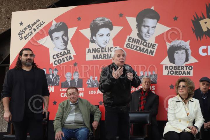 CIUDAD DE MÉXICO, 14NOVIEMBRE2023.- Enrique Guzmán, Angélica María, César Costa y Roberto Jordán durante la conferencia de prensa del espectáculo “La Caravana del Rock & Roll” a presentarse en próximas fechas en el Auditorio Nacional. FOTO: EDGAR NEGRETE LIRA/CUARTOSCURO.COM