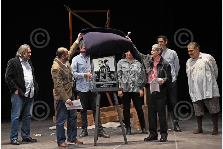 CIUDAD DE MÉXICO, 23OCTUBRE2017.- Los actores Joaquín Cossio y José María de Tavira, durante la obra La desobediencia de Marte del escritor Juan Villoro, previo a la develación de la placa en el teatro Helénico. FOTO: SECRETARIA DE CULTURA /CUARTOSCURO.COM