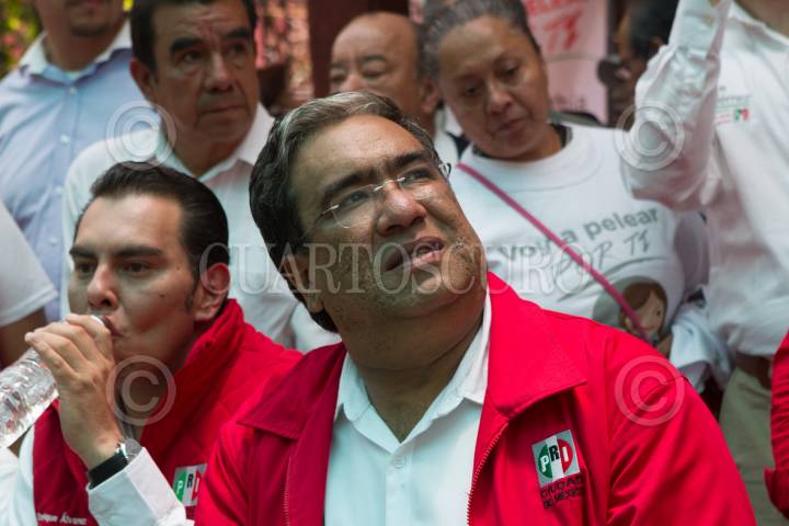MÉXICO, D.F., 03JUNIO2015.- Mauricio López, dirigente del PRIDF, durante un evento en la unidad habitacional La Fortaleza, ubicada en el barrio de Tepito, en donde la candidata tricolor Cyhnthia López Castro realizó su cierre de campaña con miras a ocupar un lugar en la ALDF. FOTO: MOISÉS PABLO /CUARTOSCURO.COM