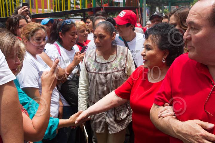 MÉXICO, D.F., 03JUNIO2015.- La actriz Carmen Salinas, candidata del PRI a una diputación familiar, saluda a los habitantes de la unidad habitacional La Fortaleza, ubicada en el barrio de Tepito, en donde el PRI organizó un acto proselitista. FOTO: MOISÉS PABLO /CUARTOSCURO.COM