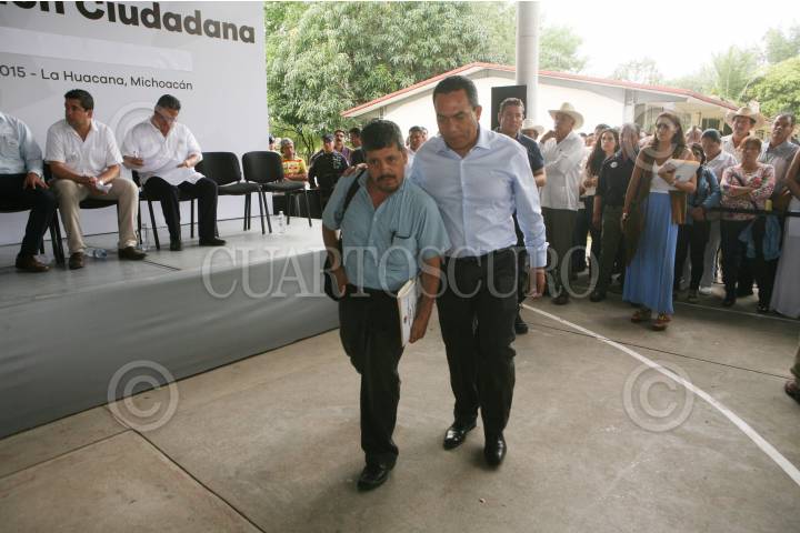 LA HUACANA, MICHOACÁN, 27NOVIEMBRE2015.- Silvano Aureoles Conejo, Gobernador Constitucional del Estado, fue increpado mientras se realizaba el Foro de Consulta y Participación Ciudadana en las instalaciones del Colegio de Bachilleres, el Secretario de Gobierno, Adrián López, atendió a los representantes de la CNTE, quienes después de obtener el espacio para exponer sus necesidades en contra de la Reforma Educativa, se retiraron del lugar. FOTO: ALAN ORTEGA /CUARTOSCURO.COM