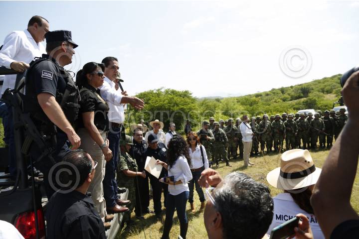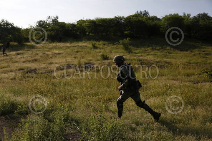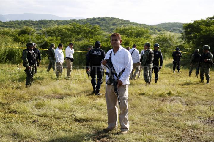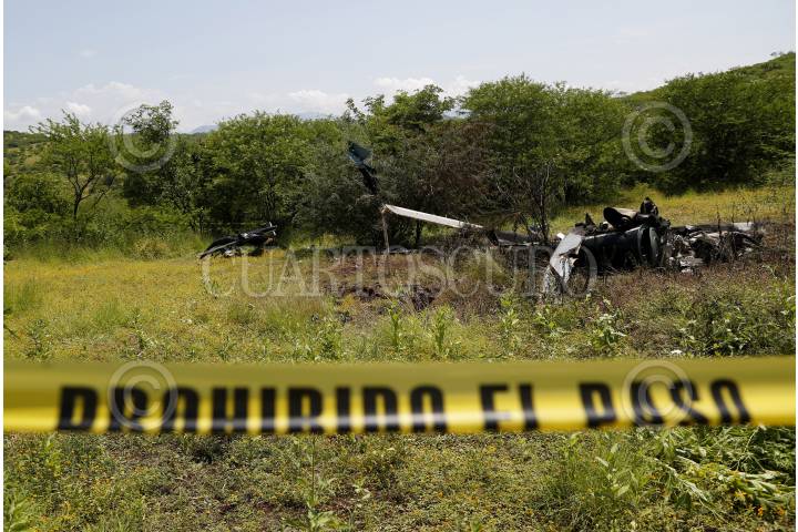 LA HUACANA, MICHOACÁN, 07SEPTIEMBRE2016.- Elementos de la Policía Michoacán y Ejército Mexicano, resguardan la zona dónde el día de ayer por la tarde fue derribado un helicóptero propiedad de la Secretaría de Seguridad Pública, durante un operativo para detener a un líder criminal. FOTO: ALAN ORTEGA /CUARTOSCURO.COM