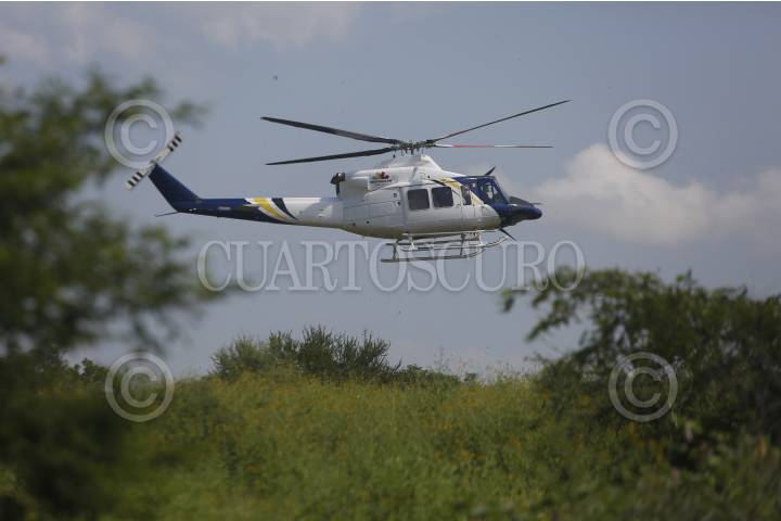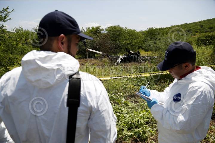 LA HUACANA, MICHOACÁN, 07SEPTIEMBRE2016.- Elementos de la Policía Michoacán y Ejército Mexicano resguardan la zona dónde el día de ayer por la tarde fue derribado un helicóptero propiedad de la Secretaría de Seguridad Pública, durante un operativo para detener a un líder criminal. FOTO: ALAN ORTEGA /CUARTOSCURO.COM