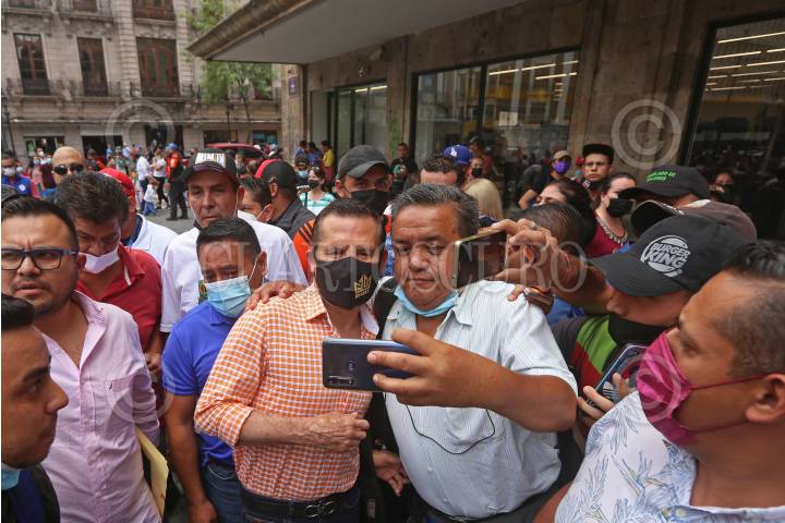 El ex boxeador Julio Cesar Chávez, se toma una fotografía con uno de los fans que acudió a presenciar la conferencia de prensa previa a la función boxística del próximo sábado en el Estadio Jalisco.