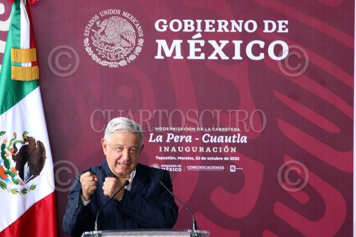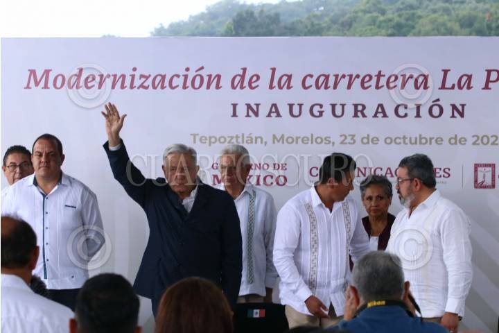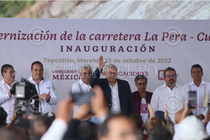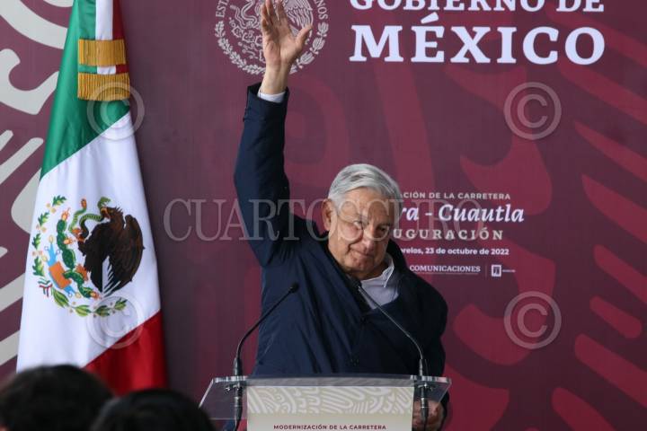 Andrés Manuel López Obrador, Presidente de México, durante la inauguración de las obras de modernización de la carretera La Pera-Cuautla.