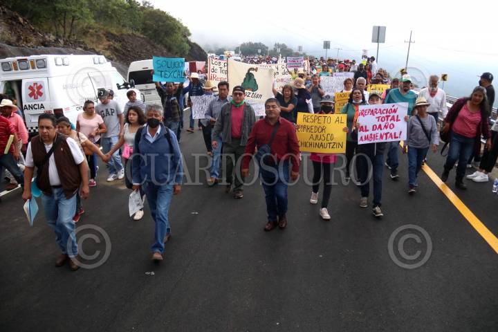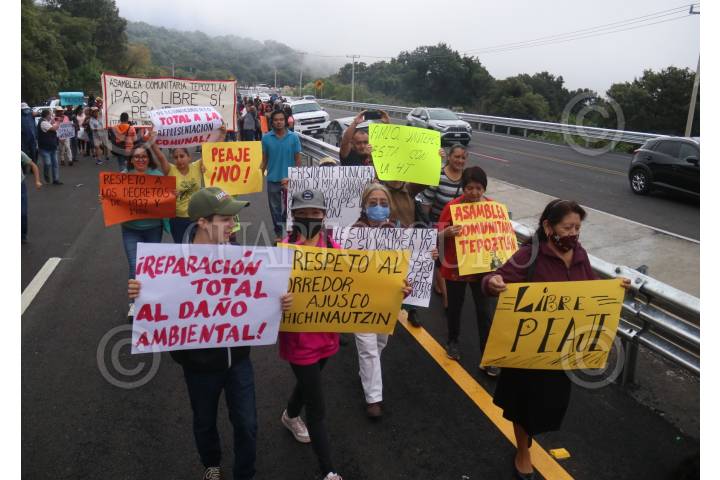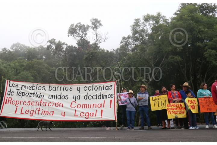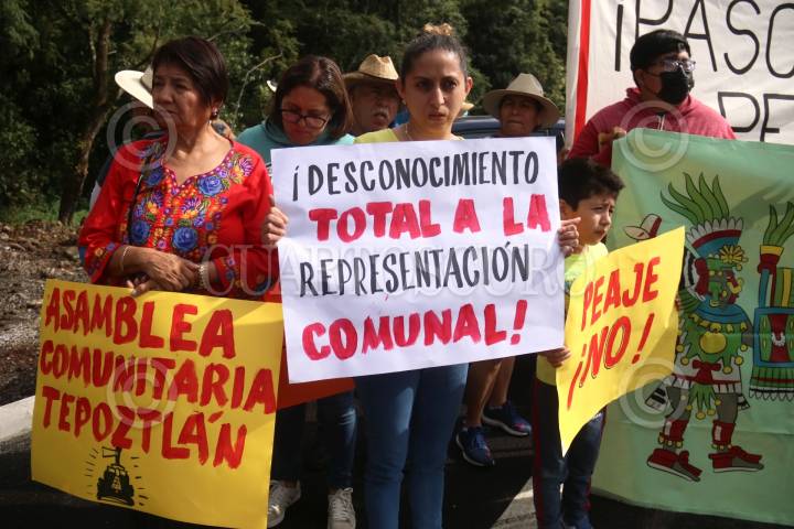 TEPOZTLÁN, MORELOS, 03SEPTIEMBRE2024.- Vecinos de este municipio protestan bloqueando la autopista La Pera - Cuautla, exigen que la Secretaría de Infraestructura, Comunicaciones y Transportes cumpla con los acuerdos firmados con las comunidades por dónde atraviesa la vía. Entre estos acuerdos está el de libre paso de los habitantes del municipio en las casetas y las obras de mejoramiento que se prometieron. El bloqueó genera tráfico en toda la zona norte del Estado. FOTO: ESPECIAL/CUARTOSCURO.COM