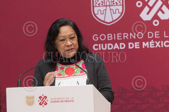 Ingrid Gómez Saracíbar, titular de la Secretaría de las Mujeres, durante la presentación de la campaña contra la violencia sexual "La Responsabilidad es Nuestra".