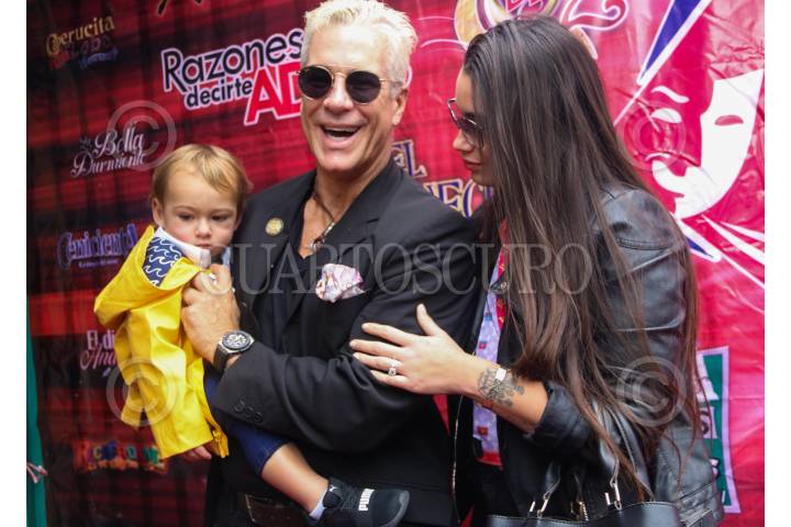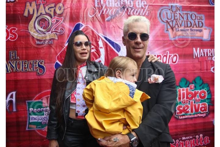 Fernando Carrillo junto con su mujer y su hijo en el estreno del musical La Sirenita, que se presenta en el teatro Tepeyac.