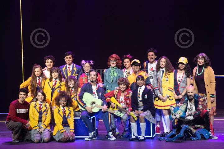 CIUDAD DE MÉXICO, 28MAYO2024.- Los productores teatrales José Manuel López Velarde; Óscar Carnicero, y Ari Boroboy, presentaron su nuevo musical La Vida es Mejor Cantando, que esta inspirado en las canciones de Timbiriche. Con un elenco lleno de jóvenes auguran una gran aceptación de esta propuesta teatral. Georgina Levin, quien interpreta a la maestra en el musical de Mentiras, será la profesora de estos jóvenes cantantes en esta nueva propuesta teatral. La puesta en escena se estrenará el 29 de junio de 2024 en el Teatro Aldama. FOTO: MOISÉS PABLO/CUARTOSCURO.COM