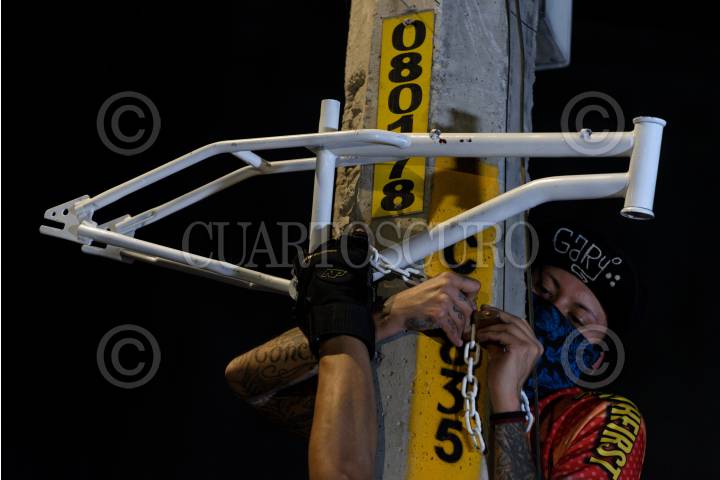 Fue colocado una bicicleta blanca en memoria de Germán Cruz García, ciclista fallecido sobre calzada La Viga.