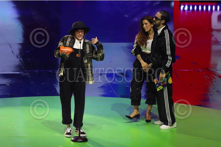 Juanpa Zurita, Macarena Achaga, Joaquín Bondoni, La granja del Borrego durante la ceremonia de los Kids Choice Awards México 2023, la celebración más pegajosa de Nickelodeon Latinoamérica, celebrada en el Auditorio Nacional.