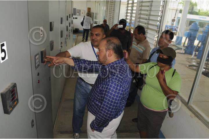 ACAPULCO, GUERRERO, 04JUNIO2014.- Marinos policías estatales antimotines tomaron el control de la planta de captación de agua Papagayo 2, que la Comisión de Agua Potable y Alcantarillado del Municipio de Acapulco (Capama) tiene en la comunidad de Salsipuedes, en la orilla del río Papagayo, luego de que los equipos de bombeo fueran apagados por integrantes del Consejo de Ejidos y Comunidades Opositores a la presa La Parota (Cecop), el pasado martes. La movilización, que buscaba principalmente que las autoridades liberen al campesino José Palma Tornés, detenido el pasado 29 de mayo acusado de tentativa de homicidio, luego de un enfrentamiento a balazos entre policías comunitarios de Cacahuatepec y pobladores de Parotillas. Después de un acuerdo con los comunitarios, se volvió a normalizar el servicio. FOTO: BERNANDINO HERNÁNDEZ /CUARTOSCURO.COM