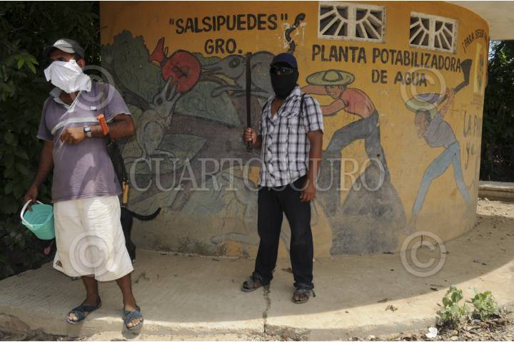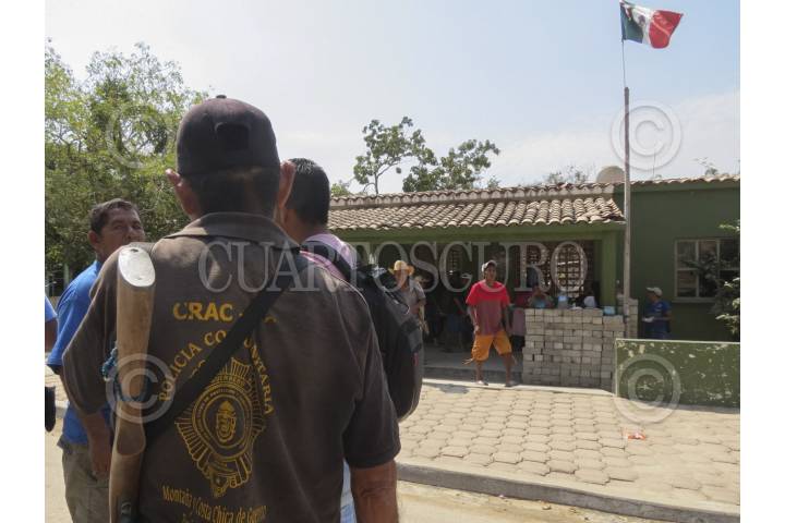 ACAPULCO, GUERRERO, 08MARZO2017.- Elementos del Sistema de Seguridad y Justicia Ciudadana, pertenecientes a la unión de pueblos y organizaciones del estado de Guerrero (Upoeg), irrumpieron la manaña de hoy con armas largas y de forma violenta la casa de justicia de La Concepción, afines al Consejo de ejidos y comunidades opositores a la presa la Parota (Cecop). Policias comunitarios resguardan las inmediaciones de la casa. FOTO: BERNANDINO HERNÁNDEZ /CUARTOSCURO.COM