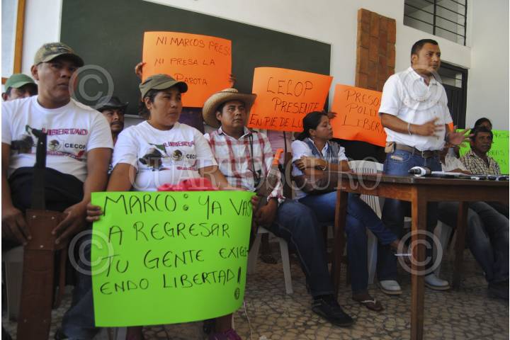 CHILPANCINGO, GUERERRO, 29ENERO2015.- Integrantes de la Cecop piden el traslado inmediato del vocero Marco Antonio Suastgui al penal de la Unión, aseguran que nunca debió haber pisado el penal de Nayarit de máxima seguridad; no hay delito para que este allá, dijeron en conferencia Abel Barrera, representante de Tlachinollan, y su abogado Rogelio Teliz. FOTO: JOSÉ I. HERNÁNDEZ / CUARTOSCURO.COM