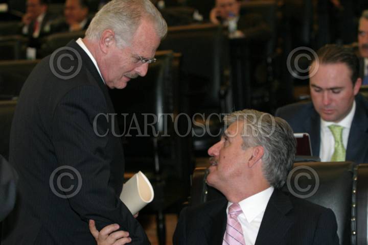 MÉXICO, D.F., 20FEBRERO2007.- Los senadores priistas Francisco Labastia y Ricardo García Cervantes, durante la sesión en el Senado de la República. FOTO: MOISÉS PABLO/CUARTOSCURO.COM